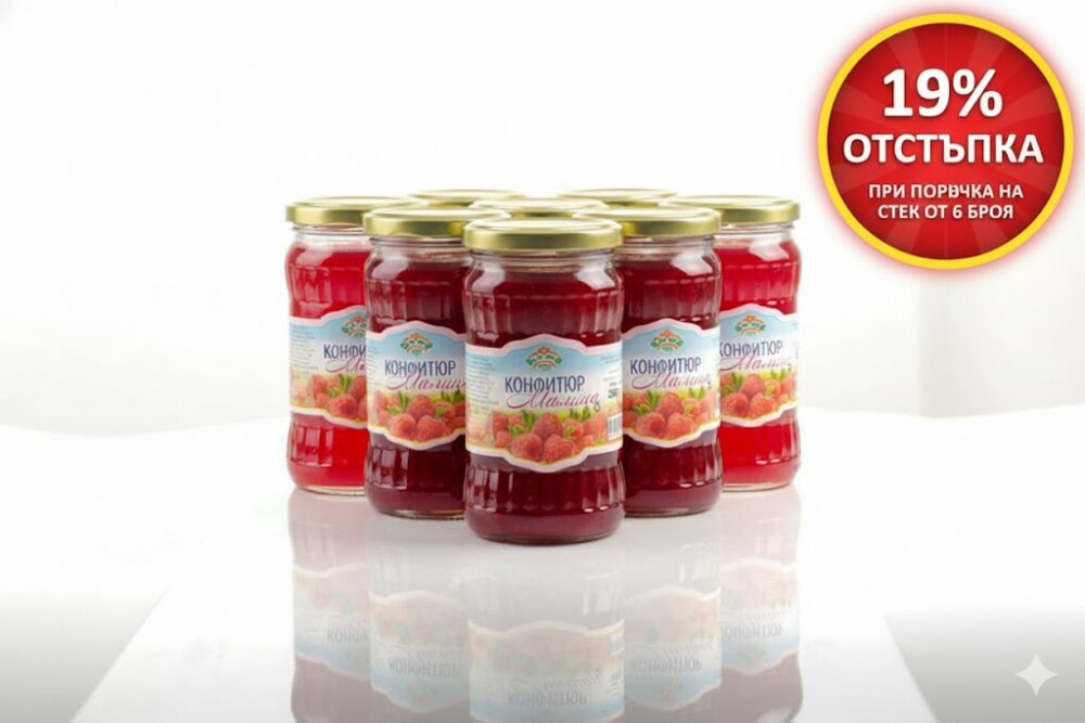 Потопете се в класическия, неустоим вкус на истинската българска малина! Конфитюрът от малини на "Булмед 2002" е приготвен с внимание към всяка подробност, за да запази свежия, леко тръпчив и интензивен аромат на един от най-обичаните плодове – идеално решение за вкусна подготовка за зимата. Насладете се на него за закуска, десерт или като сладък пълнеж. Цената за стек от 6 броя е с отстъпка от 19%! Предлагаме безплатна доставка за поръчки над 100 лв.!